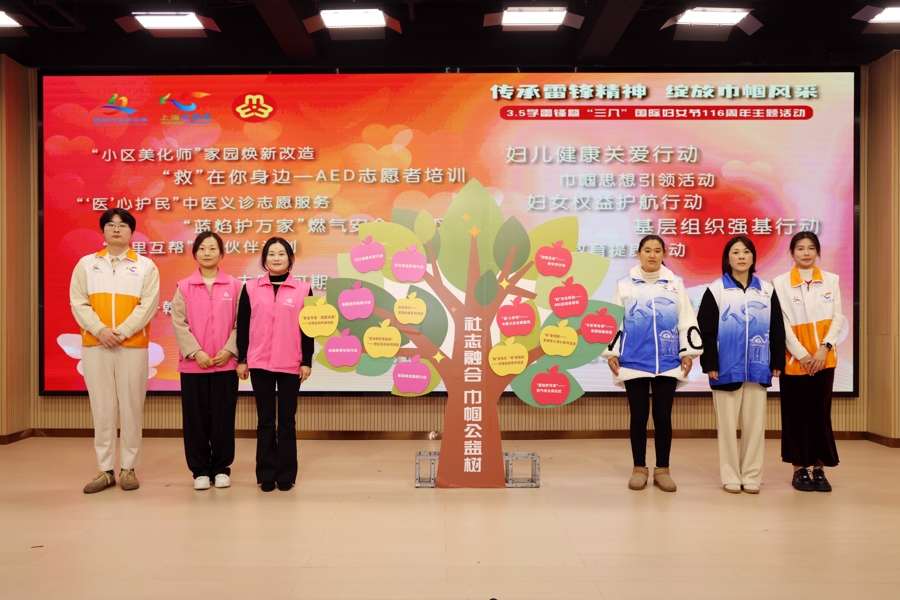 朱泾镇2026年“社志融合、巾帼公益”年度重点项目同步推出,涵盖“救在你身边——AED志愿者培训”“她行动——巾帼思想引领行动”“紫金学堂·翰墨传香——文明实践共建”等15项公益项目,聚焦思想引领、权益保障、家庭建设等五大方向,推动志愿服务与妇女儿童家庭公益事业深度融合,书写巾帼建功新篇章。